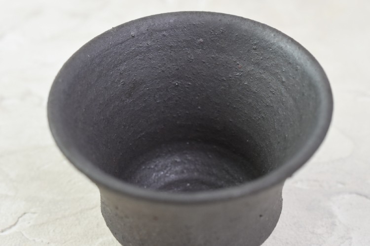 マットで凹凸のある表面は鉄のようなザラザラとした質感のカップ