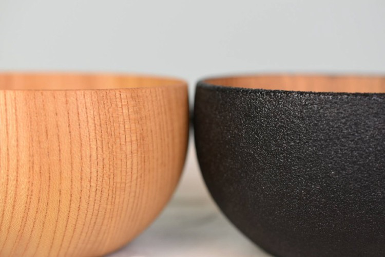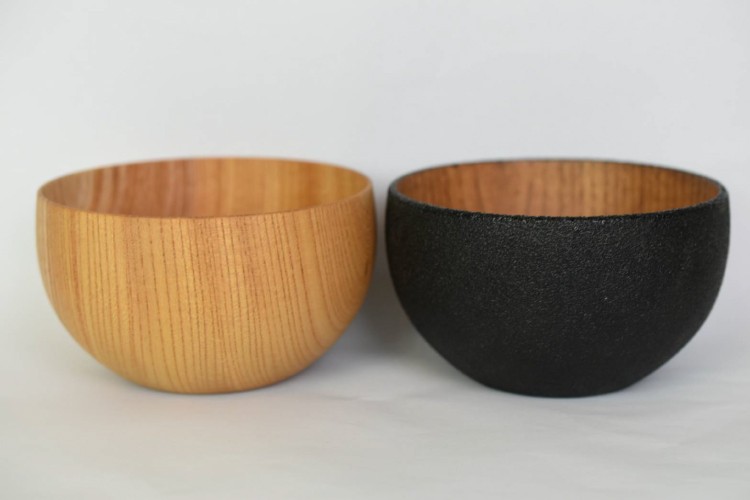 丸椀の左がみつろう、右が炭黒色。
